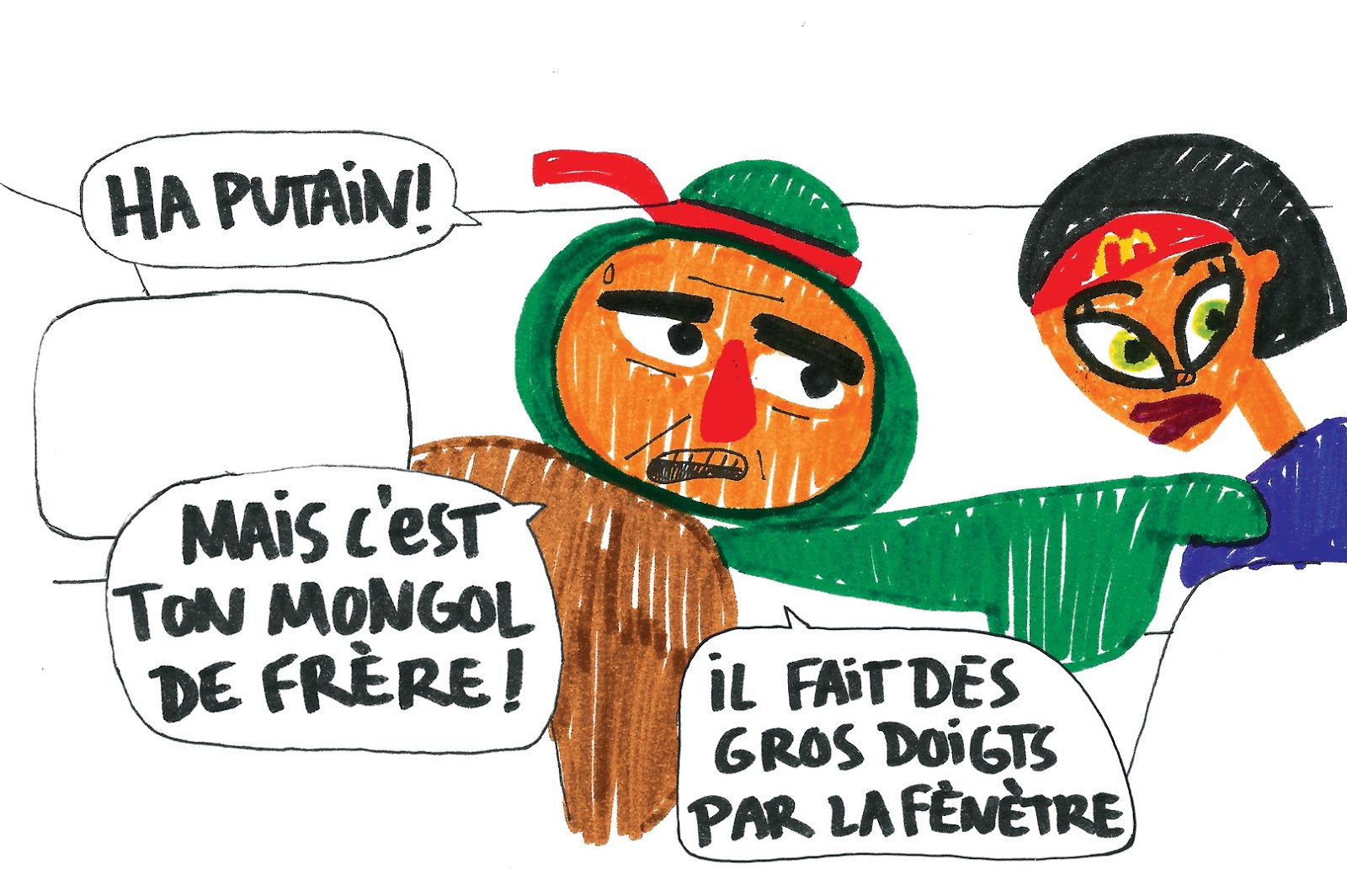 C'est de la merde, t'es nul tu sais pas dessiné, t'es pas drôle, les blagues pipi-caca c'est bon quand t'as 6 ans, il s'agirait de grandir ! Merci !