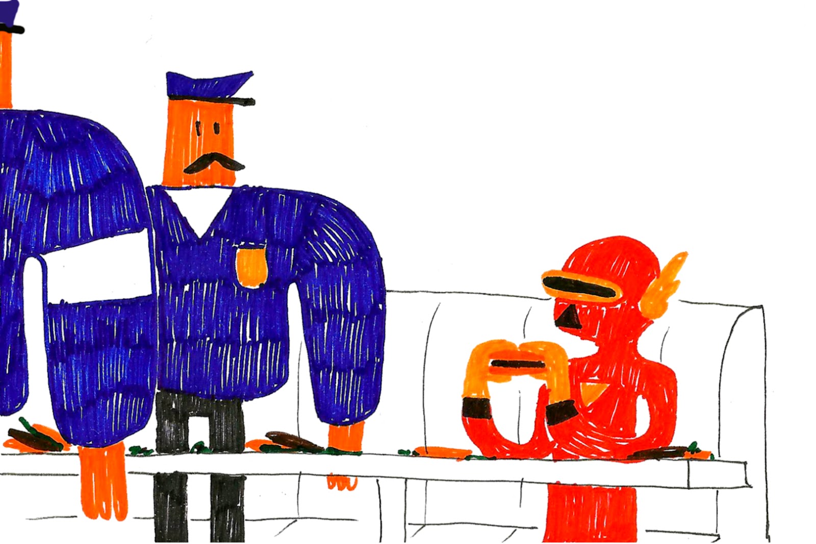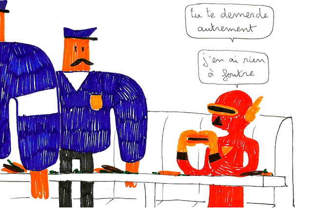 Tain ça me donne trop des idées : j'vais faire un genre d'histoire mais avec des dessins au feutre, d'un mec en moule-bite bleu, il s'appellera Brade Pitt et il sera trop coule. Même que au début ya un mec qui aura vomi dans sa cuisine...